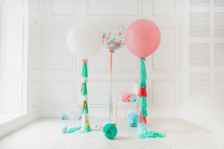 1 шар из набора наполнен конфетти. цвет которого можно изменить на нужный Вам.