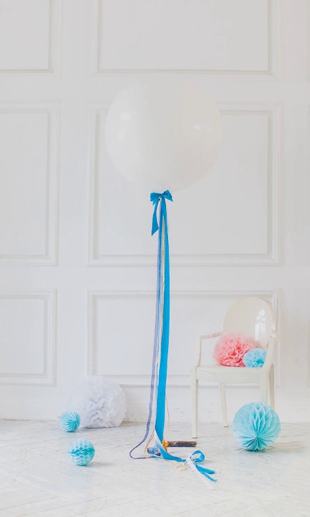 Большой шар белого цвета на атластных лентах (70 см) (3)