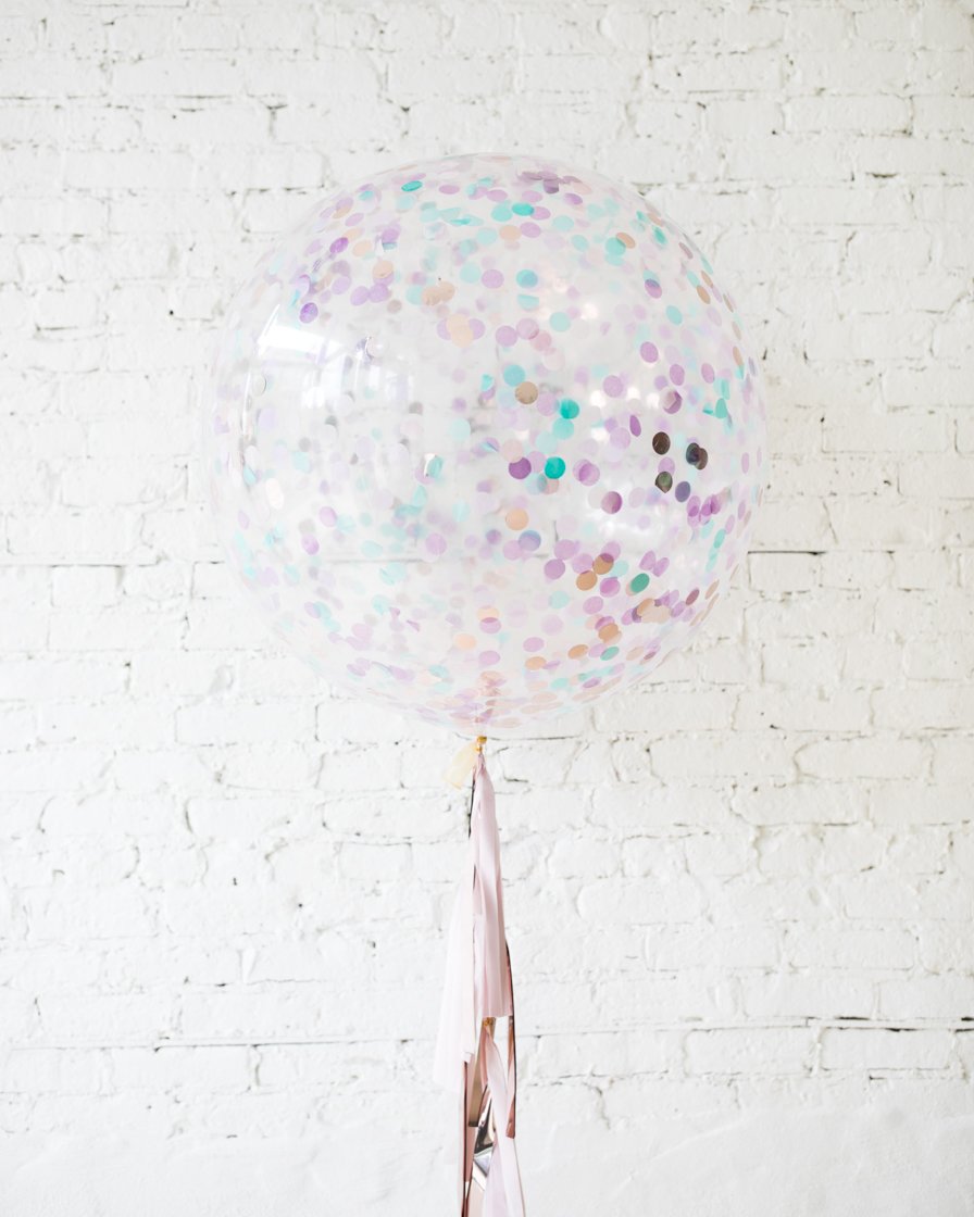 Большой шар с круглым конфетти (лавандовым,белым,бирюзовым,розовое-золото,персиковый) на гирлянде (можно изменить цвет конфетти) (90 см) (3)