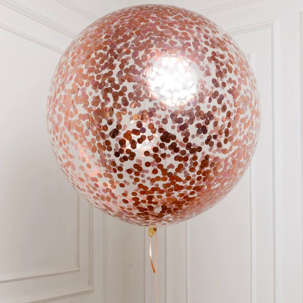 Большой шар с розовым-золото круглым конфетти