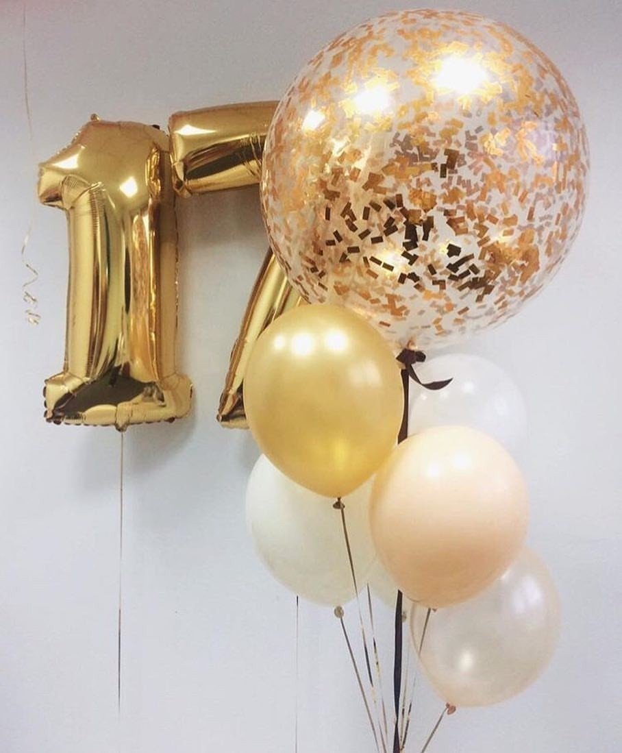 - 2 фольгированных золотых шар цифра 17 (цифры можно заменить в букете на нужные Вам) ( 102 см) (3)