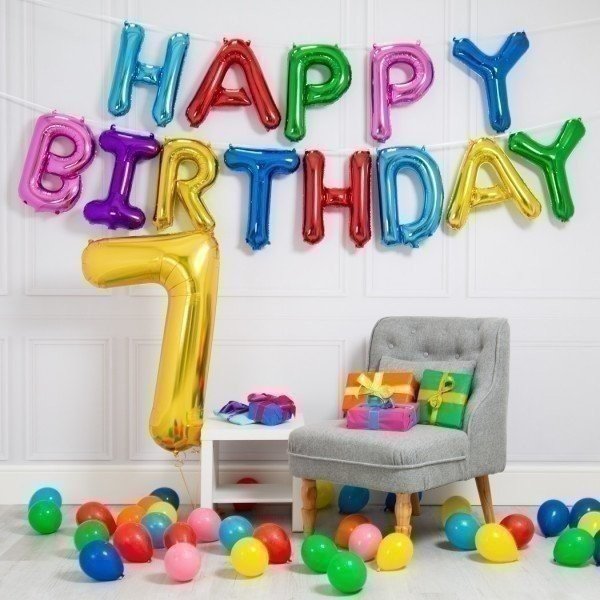 - 1 большая фольгированная цифра 7 золотая (102см) По желанию заказчика можно изменить.
