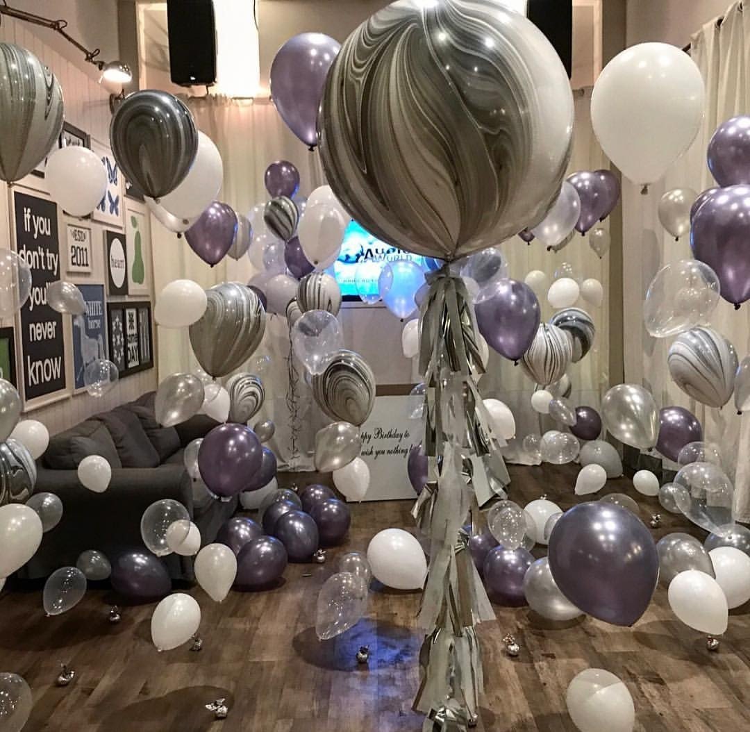 - 12 фонтанов из 7 шаров (белых,серебро,лавандовых,мраморных) металлик Премиум (35 см) (з)