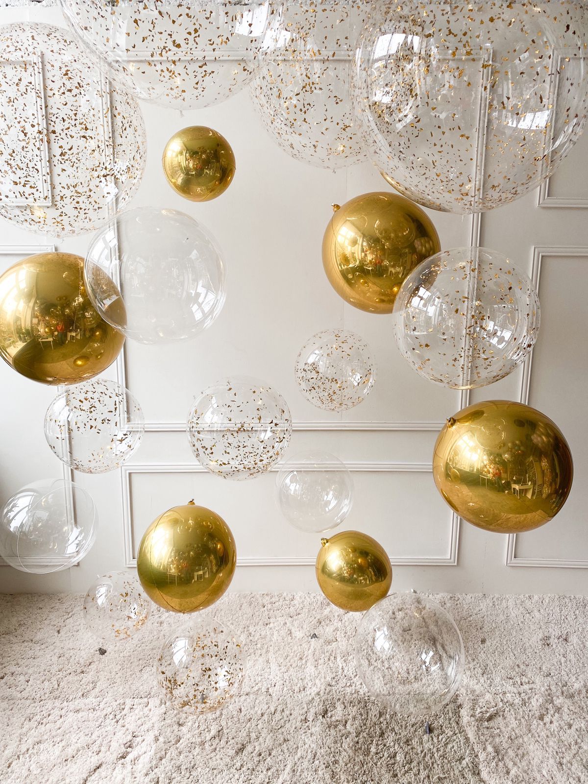 - 4 Ниточки пузырьков с шаром Bubble с конфетти (диаметр 70 см) и сферами