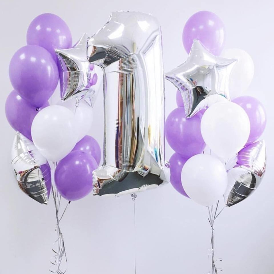 - 1 фольгированный шар цифра 1 серебро  (цифру можно заменить на нужную Вам) ( 102 см) (3)