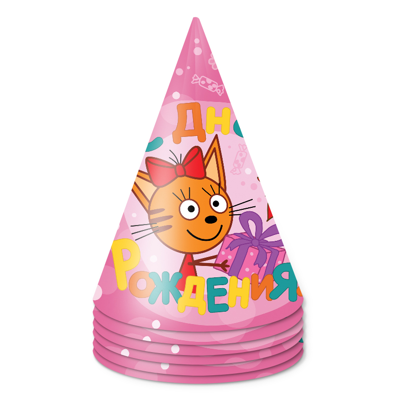 Колпаки, Три Кота, С Днем Рождения!, Розовый, 6 шт.