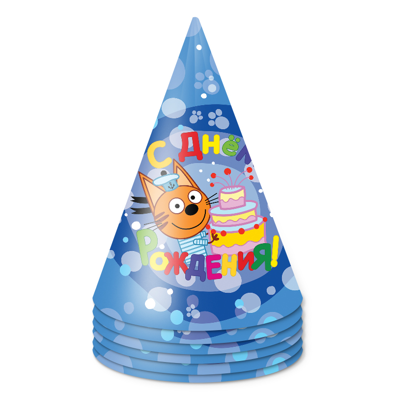 Колпаки, Три Кота, С Днем Рождения!, Синий, 6 шт. в интернет-магазине . Заказать с доставкой! Тел.: +7 (495) 117-74-27.