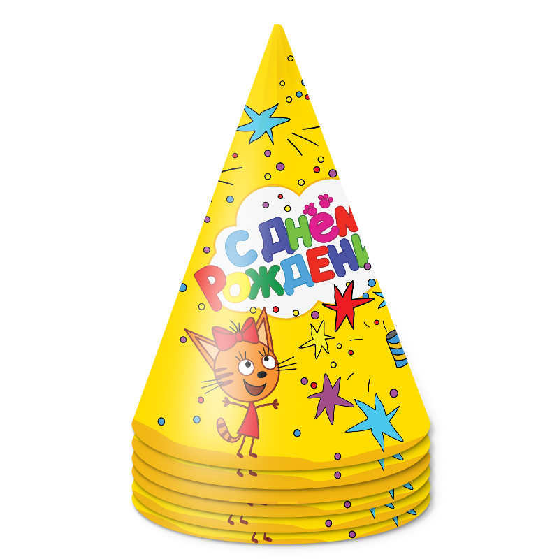 Колпаки, Три Кота, С Днем Рождения!, Желтый, 6 шт.