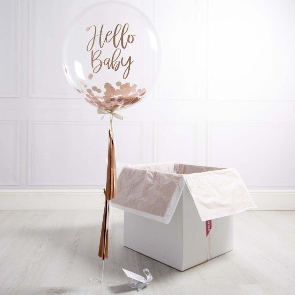 Шар Bubble с конфетти, гирляндой и надписью в коробке.
