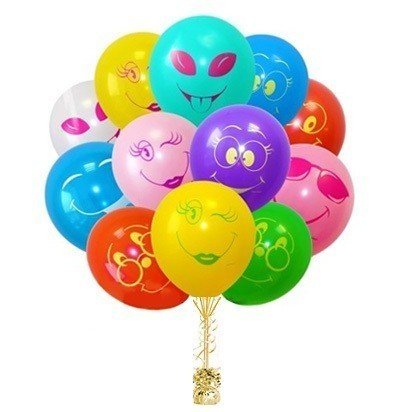 - 50 больших латексных шаров с изображением рожиц (35 см)