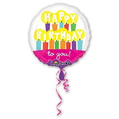 Белый фольгированный шар с яркими именинными свечками – С днем рождения!