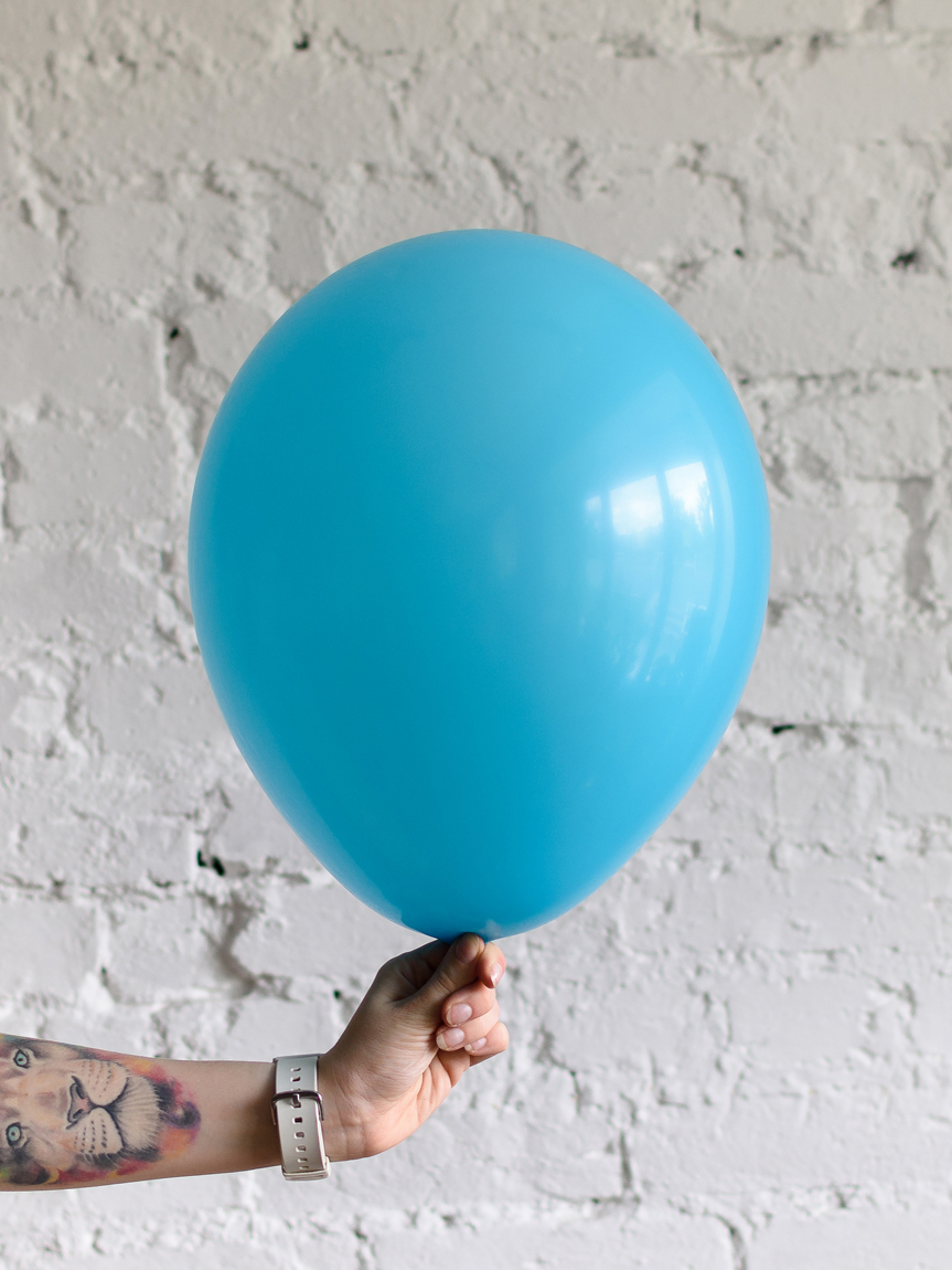 - 1 латексный шар бирюзово-голубой матовый на ленте.