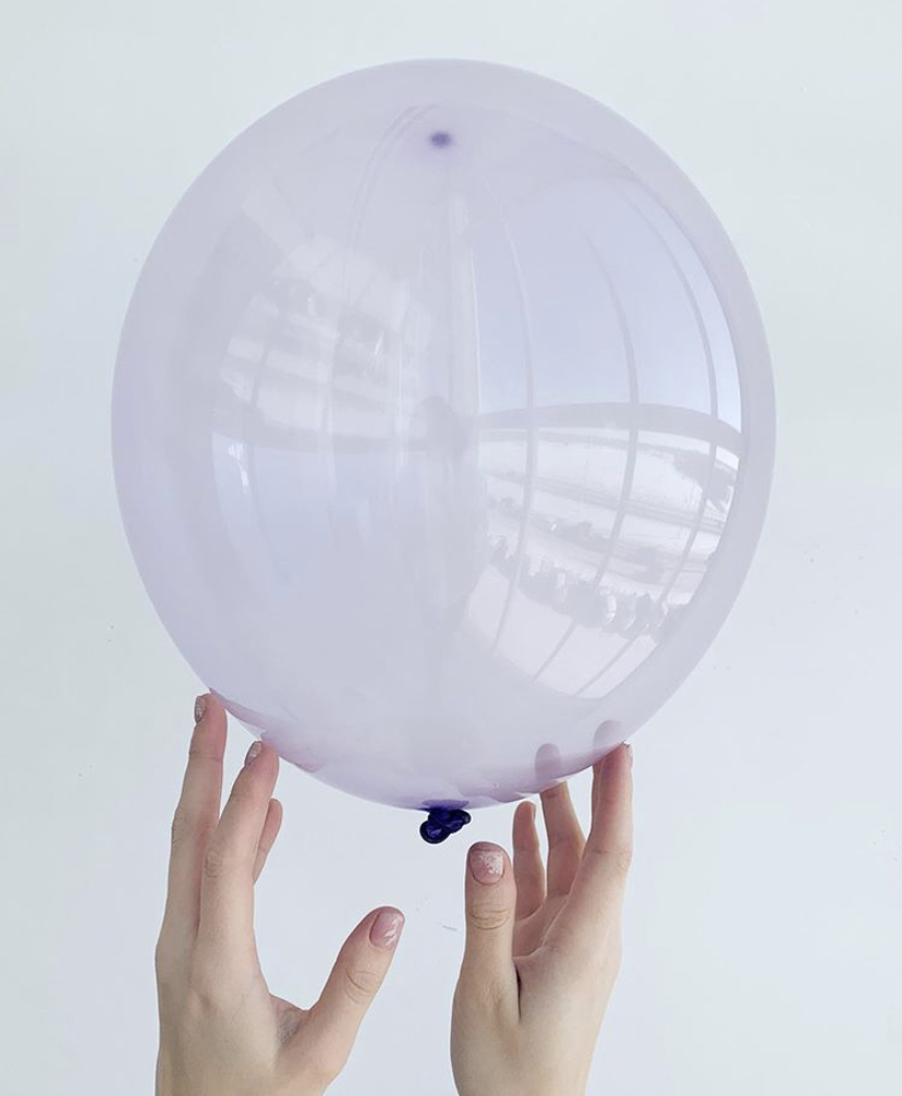 - 1 латексный шар Bubble фиолетовый на ленте.