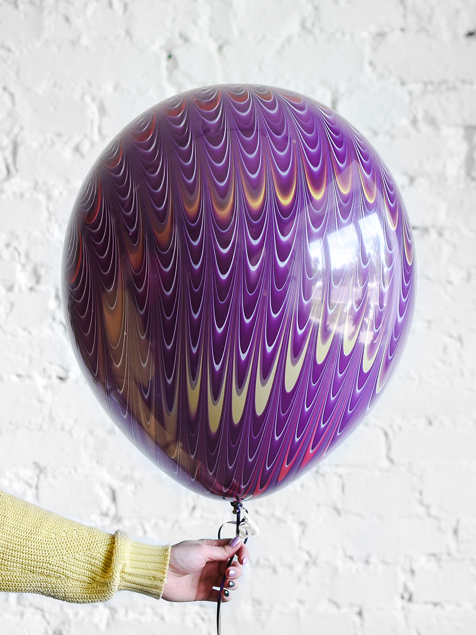 - 1 латексный шар Фиолетовый мраморный на ленте.