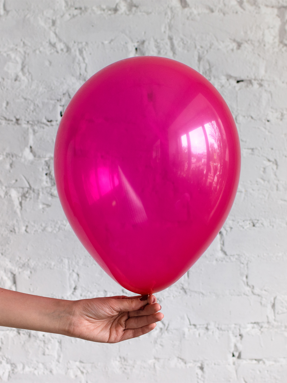 - 1 латексный шар цвета фуксия полупрозрачный на ленте.