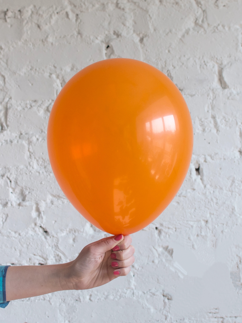 - 1 латексный шар оранжевый полупрозрачного цвета на ленте.
