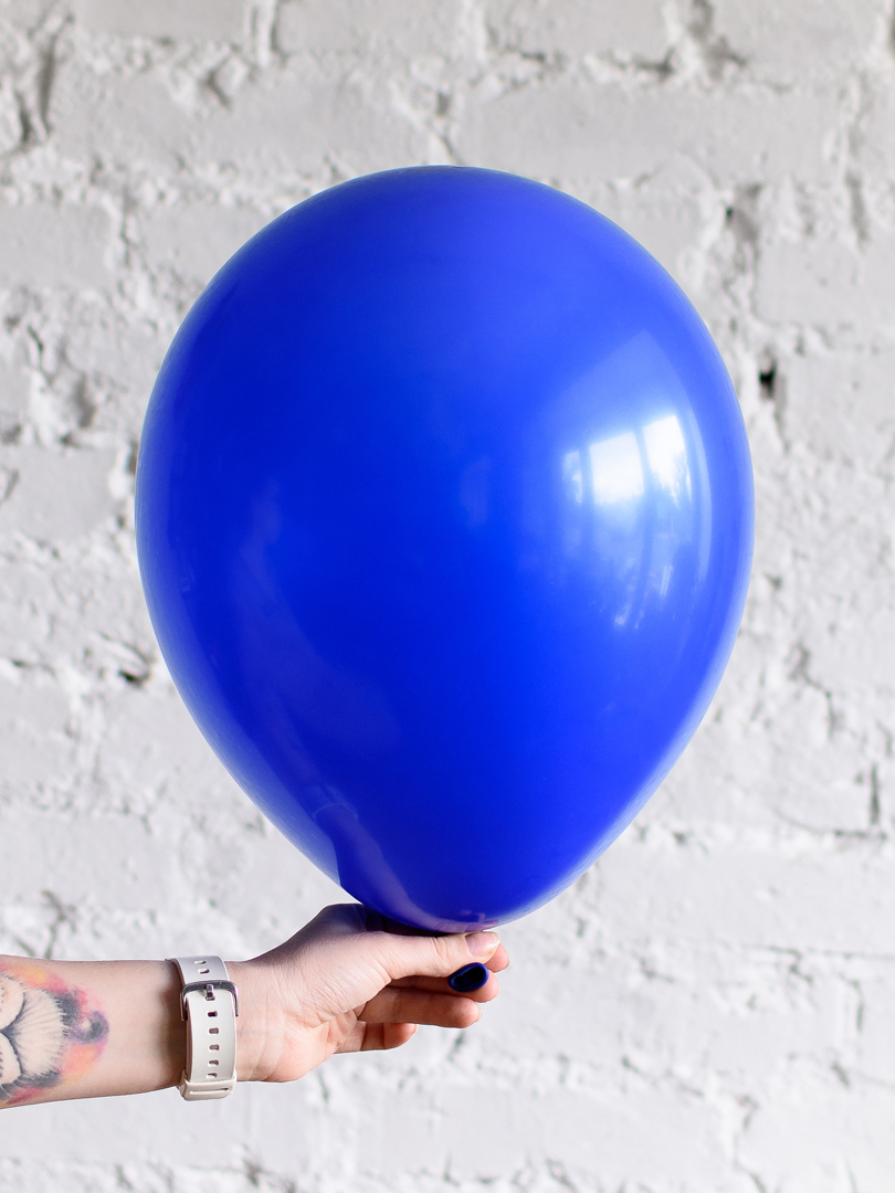 - 1 латексный шар тёмно-синий матовый на ленте.