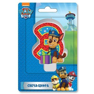 Свеча-цифра "3" Щенячий Патруль, 8 см