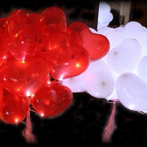 - 25 средних красных,белых,розовых латексных сердец (30 см) (з) + В каждый шарик помещен светодиод, который светится постоянно белым светом.